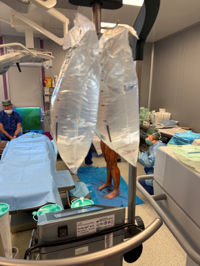 Vstupní vyšetření začalo brzy po příchodu. Zavedli mi kanylu a asistent kliniky Robert mi pak fixem vyznačil oblasti na těle, které se měly operovat. Pomocí ultrazvuku zjistili už dopředu, kolik tuku bude potřeba odstranit.