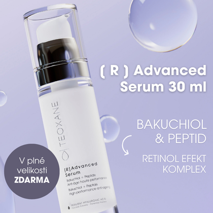 ZDARMA [ R ] Advanced Serum (30 ml) - inovativní anti-aging sérum s přínosy retinolu, ale bez obav z podráždění a vedlejších účinků. Doporučeno pro citlivou pleť. Obsažený peptid bakuchiol stimuluje produkci různých typů kolagenu v pleti a pomáhá obnovovat pokožku.